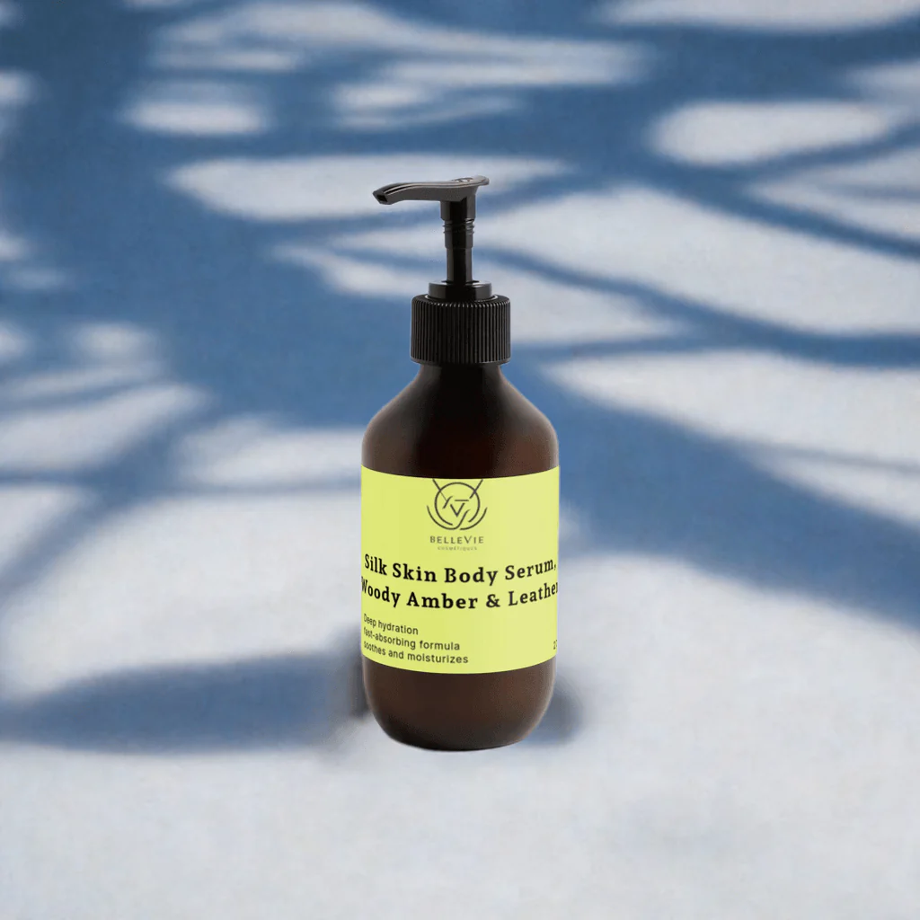 Silk Skin Body Serum, Woody Amber & Leather 270ml – Fast-Absorbing Hydration + Glow